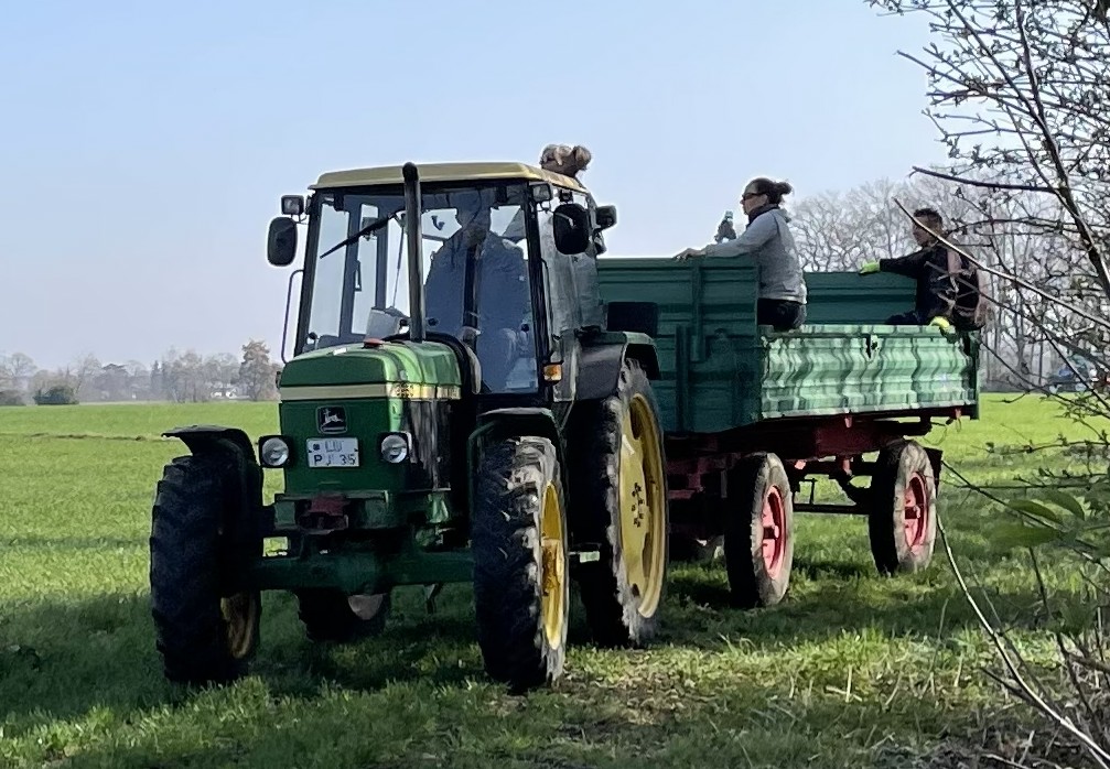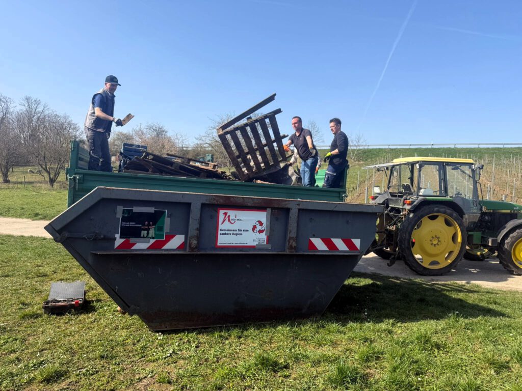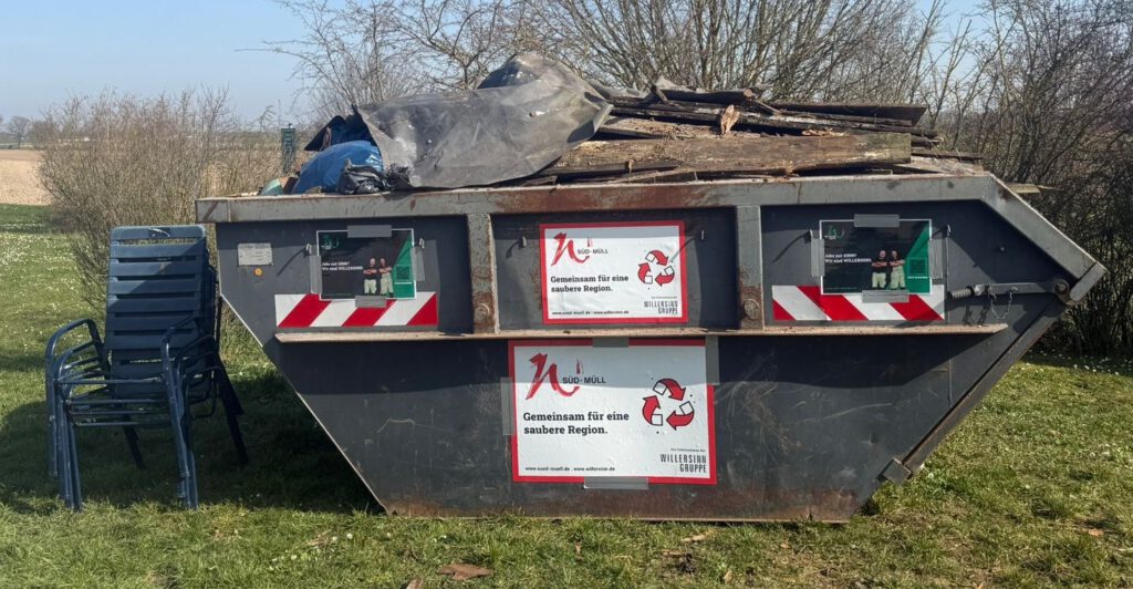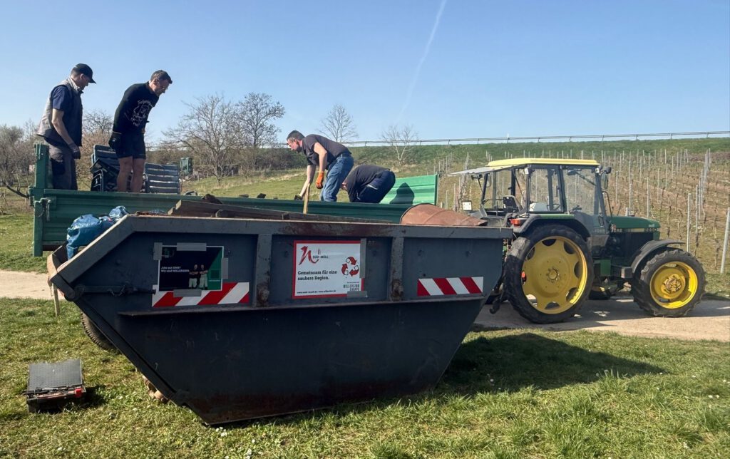 Nach etwa drei Stunden intensiver Arbeit waren die meisten Bereiche abgegangen und der bereitgestellte Container bis zum Rand gefüllt. Neben den vielen fleißigen Helfern kamen auch zwei Traktoren sowie PKW mit Anhängern zum Einsatz, um den gesammelten Müll abzutransportieren.