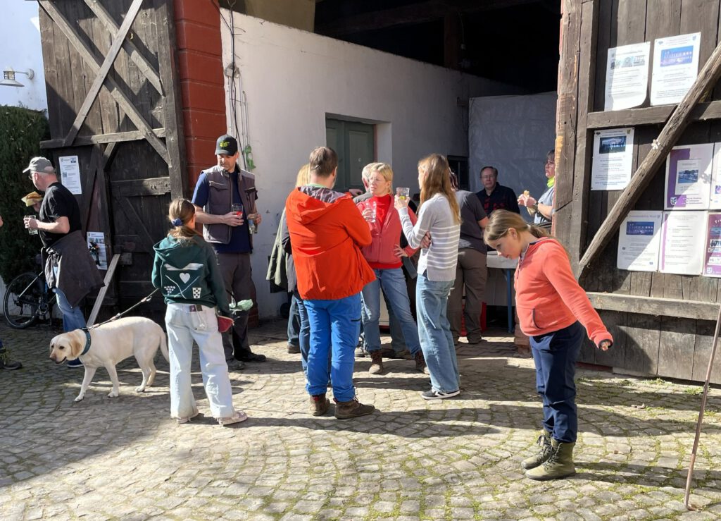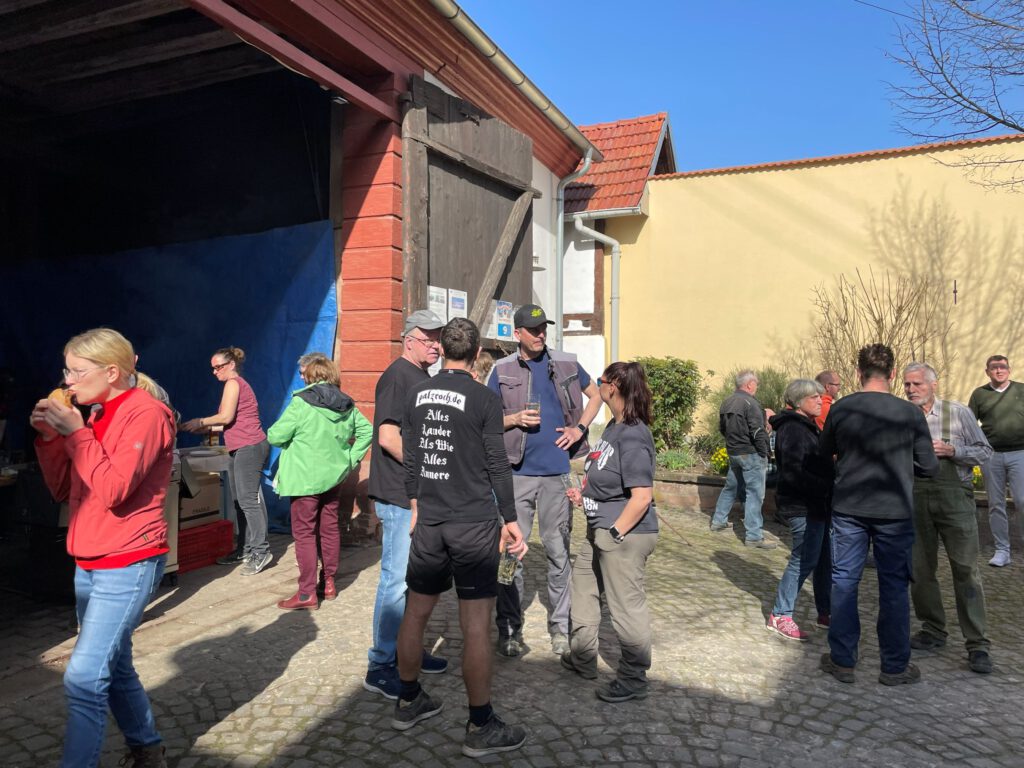 Zum Abschluss trafen sich alle Beteiligten im Schlosshof. Bei gegrillten Würstchen und Steaks sowie einem Glas Wein- oder einer Apfelsaftschorle konnten wir gemeinsam auf eine gelungene und erfolgreiche erste Flurreinigung in Kleinniedesheim anstoßen.